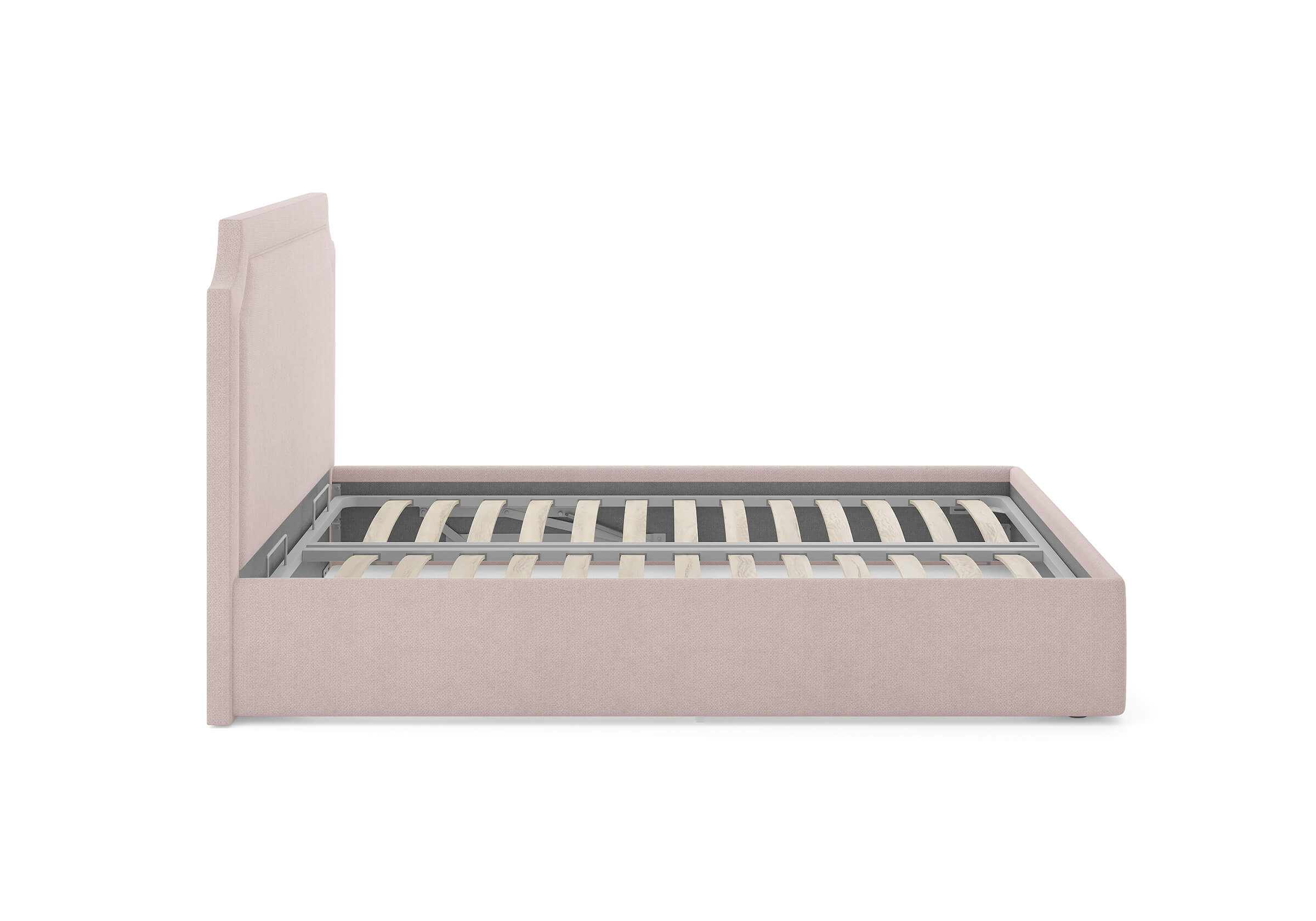 Кровать с высоким, элегантным изголовьем и декоративной рамкой. Такое решение придает кровати визуальную выразительность и делает ее центральным элементом спальни. Стоит обратить внимание на декоративный кант, который добавляет изысканности и завершенности облику. Кровать Eliot имеет минимальные опоры, царги опущены до пола. Также можно встроить зону хранения — это идеальное решение для экономии пространства в спальне.
