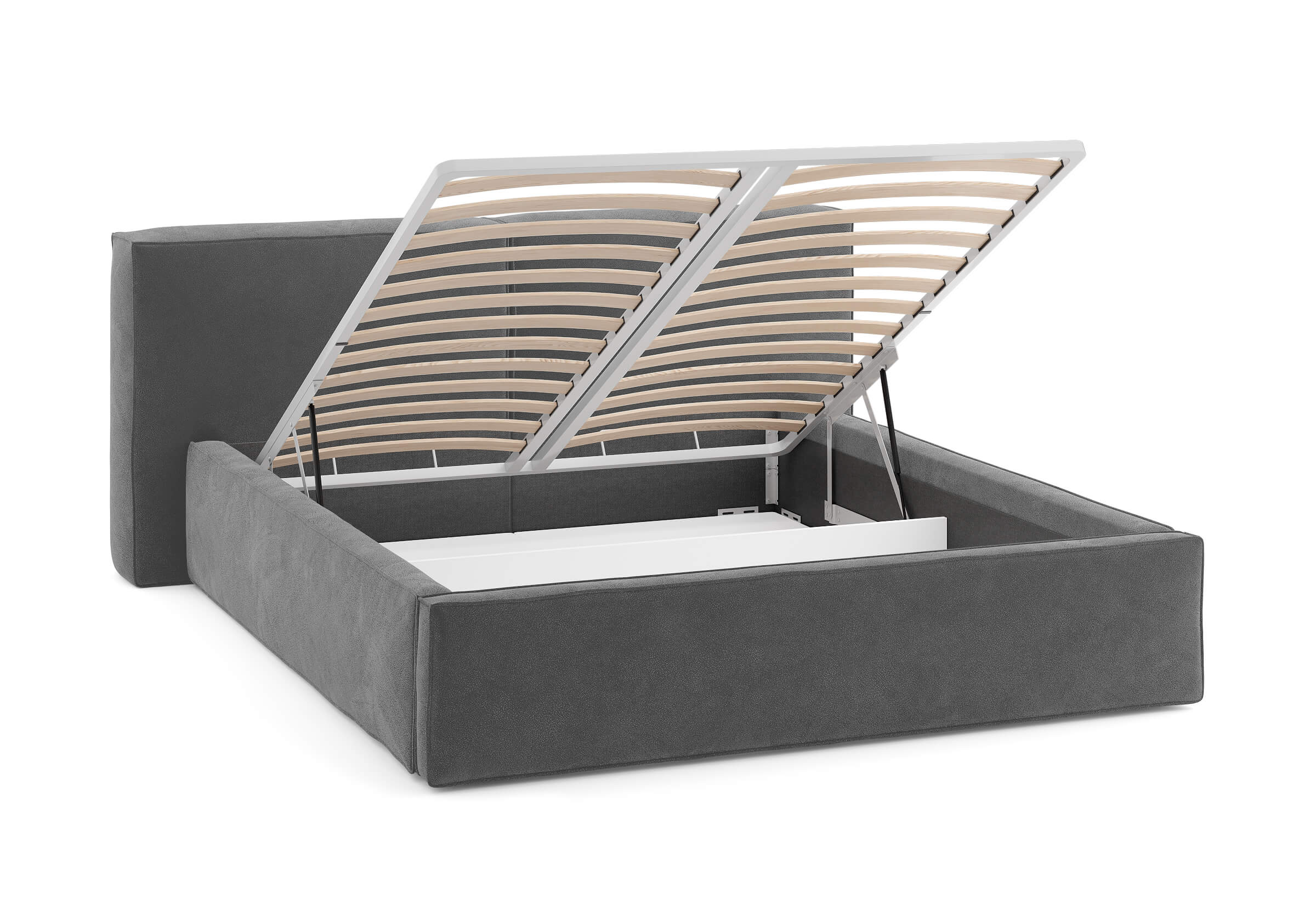 Возможна установка подъемного механизма со вместительным бельевым ящиком. Дно бельевого ящика легко сдвигается для обеспечения уборки под кроватью.